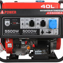 Производитель: A-ipower Модель: A5500EA - Топливо: бензин - На выходе генератора: 5 кВт, 220 B, розетки 3 шт - Работа: до 11 ч, бак 40 л Описание