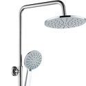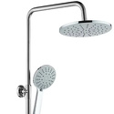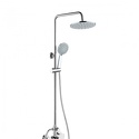 Устройство: душевая система • Смеситель: джойстик • Ручной душ (душевая лейка): размер 120 мм, настройки 5 шт • Верхний душ (тропический): размер 200 мм, настройки 1 шт • Комплектация: ручной душ, верхний душ, смеситель, стойка, шланг, крепление ручного душа