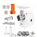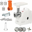 Производительность: 1.6 кг/мин • Вес: 3.3 кг • Насадки-решетки: Есть, 3 штуки • Насадки-терки: Есть, 2 • Насадки для шинковки: Есть • Прочие насадки: для приготовления кеббе, для приготовления колбас • Соковыжималка: есть • Отделение для хранения насадок: есть • Резиновые ножки: есть • Лоток для подачи продуктов: есть, пластик • Цвет корпуса: белый • Материал корпуса: пластик • Отделение для хранения кабеля: есть