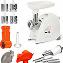 Куплена за 4К в начале января 2017. Впечатлило количество насадок, хотя все они на мой вкус не нужны, теперь будут валятся на балконе. Сама мясорубка отвращение внешним видом не вызывает - компактная, удобная, устойчивая. Сначала помыл все части, потом пропустил через мясорубку пару луковиц и картофелин. Как и ожидал - первые были в масле :( или какой-то технической смазке. Теперь по основной функции - хреначит мясо на ура, жена правда очень аккуратно его от жил очищает, прежде чем закидывать. Котлетки вкусные. В общем пока приличная мясорубка от российского производителя, с учетом того, что аналоги от известных импортных контор стоят в районе 8-10К - хорошая покупка.