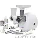 Номинальная мощность: 230 Вт • Производительность: 0.83 кг/мин • Вес: 5 кг • Насадки-решетки: Есть, 2 штуки (4.5 мм, 7 мм) • Насадки-терки: Есть • Насадки для шинковки: Есть • Прочие насадки: для приготовления колбас, для формовки теста • Соковыжималка: есть • Пластиковый шнек для ягод и фруктов: есть • Лоток для подачи продуктов: есть, пластик • Цвет корпуса: белый • Материал корпуса: нерж.сталь, пластик