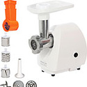 Номинальная мощность: 230 Вт • Производительность: 0.83 кг/мин • Вес: 5 кг • Насадки-решетки: Есть, 2 штуки (4.5 мм, 7 мм) • Насадки-терки: Есть • Насадки для шинковки: Есть • Прочие насадки: для формовки теста • Пластиковый шнек для ягод и фруктов: есть • Лоток для подачи продуктов: есть, пластик • Цвет корпуса: белый • Материал корпуса: нерж.сталь, пластик • Защита от перегрузки: есть