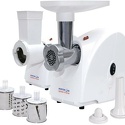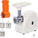 Номинальная мощность: 230 Вт • Реверс: есть • Производительность: 1.7 кг/мин • Насадки-решетки: Есть, 2 штуки • Насадки для шинковки: Есть • Прочие насадки: для приготовления колбас, для формовки теста • Лоток для подачи продуктов: есть, пластик • Цвет корпуса: белый • Материал корпуса: пластик • Максимальная мощность: 1500 Вт