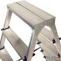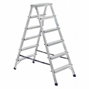 Стремянка алюминиевая двухсторонняя серии AD7206 Алюмет предназначена для проведения различных видов работ на высоте до 3.5 м как в быту, так и на производстве. Она представляет собой свободностоящую переносную лестницу, сужающуюся к верху, имеющую две стороны подъема и раскладывающуюся для выполнения определённой задачи. Верхняя рабочая площадка образуется только в рабочем положении из двух верхних ступенек двух составных частей стремянки.