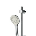 Устройство: душевой набор • Ручная лейка: размер 110 мм, настройки 3 шт • Комплектация: лейка, стойка, шланг, крепление лейки, мыльница