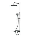Устройство: душевая система • Смеситель: однорычажный • Ручной душ (душевая лейка): размер 120 мм, настройки 3 шт • Верхний душ (тропический): размер 254 мм, настройки 1 шт • Комплектация: ручной душ, верхний душ, смеситель, стойка, шланг, крепление ручного душа, полка