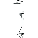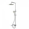 Устройство: душевая система • Смеситель: джойстик • Ручная лейка: размер 110 мм, настройки 3 шт • Верхний душ: размер 250 мм, настройки 1 шт • Комплектация: лейка, смеситель, стойка, шланг, крепление лейки