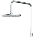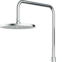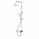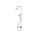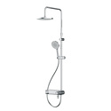 Устройство: душевая система • Смеситель: однорычажный, от стены 40 мм • Ручной душ (душевая лейка): размер 120 мм, настройки 3 шт • Верхний душ (тропический): размер 220 мм, настройки 1 шт • Комплектация: ручной душ, верхний душ, смеситель, стойка, шланг, крепление ручного душа, полка