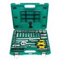 Головки торцевые подробновороток т-образный 1/4"; удлинитель 1/4": 100 мм; с битами 1/4": Т8, T10, T15, T20, T25, T30, PH1, PH2, PZ1, PZ2, SL4, SL5.5, SL6.5, H3, H4, H5, H6; 1/2": 10, 11, 12, 13, 14, 15, 16, 17, 18, 19, 20, 21, 22, 23, 24, 27, 30, 32 мм; длинные 1/2": 10, 11, 12, 13, 14, 17, 19, 22 мм; головки свечные 1/2": 16, 21 мм; трещетка 1/2": 45 зубов; удлинитель 1/2": 125, 250 мм; скользящий переходник 1/2"; карданный шарнир 1/2";