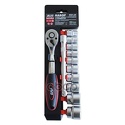 КомплектацияГоловка торцевая 6-гранная 3/8"DR 10,11,12,13,14,15,17,19,22,24 мм - 10 штТрещоточная рукоятка 3/8"DR с пластиковой ручкой, 72 зубца - 1штУдлинитель 3/8"DR 150 мм - 1шт