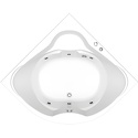 Материал: акрил • Расположение: отдельно стоящая, угловая конструкция • Форма: четверть круга • Объем: 350 л • Количество мест: одноместная • Размеры (ДxШxВ): 143x143x50 см