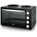 Тип конфорок: электрические • Тип духовки: электрическая • Размеры (ШxВxГ): 512x338x360 мм • Цвет: черный • Конфигурация электрических конфорок: 1 x 1000 g 1 x 600 g • Электрические конфорки: всего - 2 • Объем духовки: 30 л • Максимальная температура духовки: 250 °С • Гриль: есть, электрический • Мультифункциональная духовка: есть • Количество режимов работы духовки: 6 • Тип управления: механическое