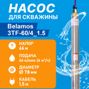 Производитель: Belamos Модель: 3TF-60/6 - Скважинный насос - производительность 6000 л/ч - напор 60 м - мощность 1200 Вт - вес 14 кг Описание