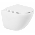 подвесной унитаз • фаянс • выпуск горизонтальный • подвод воды сзади • плавное опускание крышки • система антивсплеск • размеры 360x410x500 мм