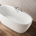 Отдельностоящая, овальная акриловая ванна. В комплекте со сливом-переливом, цвета хром. Гарантия: 10 лет