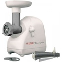 Реверс: есть • Производительность: 0.4 кг/мин • Насадки-решетки: Есть, 3 штуки • Насадки для шинковки: Есть, 4 штуки • Прочие насадки: для приготовления колбас, для формовки теста • Отделение для хранения насадок: есть • Лоток для подачи продуктов: есть, пластик • Цвет корпуса: белый • Материал корпуса: пластик • Максимальная мощность: 1500 Вт