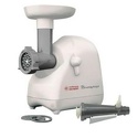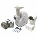 Реверс: есть • Производительность: 0.4 кг/мин • Насадки-решетки: Есть, 2 штуки • Насадки для шинковки: Есть, 3 штуки • Прочие насадки: для приготовления колбас, для формовки теста • Отделение для хранения насадок: есть • Лоток для подачи продуктов: есть, пластик • Цвет корпуса: белый • Материал корпуса: пластик • Максимальная мощность: 1500 Вт