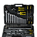 Комплектация- 12 шт.: 1/4" Головки торцевые 6-гранные Super Lock: 4, 4.5 ,5, 5.5, 6, 7, 8, 9, 10, 11, 12, 13 мм- 1 шт.: 1/4" Трещотка (ключ трещоточный с быстрым сбросом): 45 зубов- 1 шт.: 1/4" Отвертка с присоединительным квадратом- 2 шт.: 1/4" Удлинитель: 50, 100 мм- 1 шт.: 1/4" Кардан шарнирный- 1 шт.: 1/4" Гибкий удлинитель: 150 мм- 1 шт.: 1/4" Вороток Т-образный: 110 мм- 1 шт.: 1/4" Адаптор для бит- 30 шт.: 1/4" Набор бит:Torx (звёздочка): T10, T15, T20, T25, T27, T30Ph (крест): 0, 1, 2, 3, 4Pz (позидрайв): 0, 1, 2, 3, 4Hex (шестигранник): 1.5, 2, 2.5, 3, 4, 5, 6Slot (шлиц): 3, 4, 4.5, 5, 5.5, 6, 7- 1 шт.: 1/4" Держатель для бит магнитный- 20 шт.: 1/2" Головки торцевые 6-гранные Super Lock: 8, 10, 12, 13, 14, 15, 16, 17, 18, 19, 20, 21, 22, 23, 24, 25, 26, 27, 30, 32 мм- 2 шт.: 1/2" Головки свечные магнитные: 16, 21 мм- 1 шт.: 1/2" Трещотка (ключ трещоточный с быстрым сбросом): 45 зубов- 1 шт.: 1/2" Вороток шарнирный: 430 мм- 3 шт.: 1/2" Удлинитель: 50, 125, 250 мм- 1 шт.: 1/2" Кардан шарнирный- 1 шт.: 1/2" Переходник скользящий- 1 шт.: Молоток (метал, прорезиненная ручка): 500 грамм- 14 шт.: Ключи комбинированные: 6, 7, 8, 9, 10, 11, 12, 13, 14, 15, 16, 17, 19, 22 мм- 1 шт.: Пассатижи: 180 мм- 1 шт.: Клещи переставные: 250 мм- 4 шт.: Отвертки:Slot (шлиц): 6,5 x 100, 8 x 150 ммPh (крест): 1x75, 2 x100 мм- 1 шт.: Автотестер 6-12-24 V