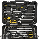 Набор: 163 шт • Ключи: комбинированные, инбусовые • Головки: 6-ти гранные головки, 12-ти гранные головки, головки E-профиль, свечные • Ключей-трещоток: 3 шт • Хранение: пластиковый кейс