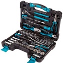 Набор: 65 шт • Головки: 6-ти гранные головки, свечные • Ключей-трещоток: 2 шт • Хранение: пластиковый кейс