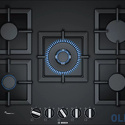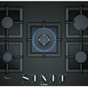 Поверхность: варочная панель • Тип поверхности: газовая • Рабочая поверхность: закаленное стекло • Число конфорок: 5 • Установка: независимая • Газовые конфорки: всего - 5 (1 конфорка "Двойная корона") • Газ-контроль конфорок: есть • Тип управления: механическое • Переключатели: поворотные • Электроподжиг: есть, автоматический • Размеры: 752x520x45 мм • Размер ниши для встраивания: 560x480 мм