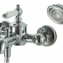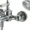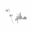 Назначение: ванна+душ • Конструкция: двухрычажный • Монтаж: вертикальный • Клапан: керамический • Материал: латунь, покрытие - бронза • Подводка: жесткая • Монтажные отверстия: 2 отверстия • Форма излива: традиционная • Душевая лейка в комплекте: есть • Держатель для душевой лейки: настенный держатель • Аэратор: есть • Эксцентрики в комплекте: есть