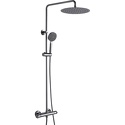 Устройство: душевая система • Смеситель: термостатический • Ручная лейка: размер 110 мм, настройки 5 шт • Верхний душ: размер 220 мм, настройки 1 шт • Комплектация: лейка, смеситель, стойка, шланг, крепление лейки