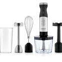 Тип: погружной (ручной) блендер • Мощность: 800 Вт • Скорости: плавная регулировка, импульсный • Насадки: ножка, венчики