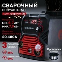 Инверторный сварочный аппарат • сварка MIG/MAG/TIG/MMA • сварочный ток 180 А • мощность 5.8 кВт • входная сеть 220В • 197x480x466 мм • вес 14 кг