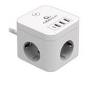 Производитель: Cablexpert Модель: CUBE-3-CU3-W-1.5 - сетевой фильтр - кабель 1.5 м - 3 розетки Schuko (евро с заземлением) / 2500 Вт/USB Описание