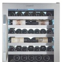 Тип: однокамерный винный шкаф • Расположение: отдельностоящий • Количество компрессоров: 1 • Цвет: серебристый • Размеры (ШxВxГ): 595x820x570 мм • Количество дверей: однодверный • Общий объем: 130 л • Винный шкаф: 46 бут. • Управление: цифровой дисплей, электронное • Освещение в холодильной камере: есть • Материал полок: дерево • Годовой расход энергии: 365 кВтч