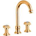 Назначение: для умывальника • Конструкция: двухрычажный • Монтаж: горизонтальный • Материал: покрытие - золото • Монтажные отверстия: 3 отверстия • Форма излива: традиционная • Душевая лейка в комплекте: нет