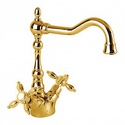 Назначение: для умывальника • Конструкция: двухрычажный • Монтаж: горизонтальный • Материал: покрытие - золото • Монтажные отверстия: 1 отверстие • Форма излива: традиционная • Душевая лейка в комплекте: нет