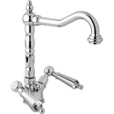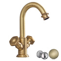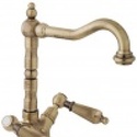 Назначение: для умывальника • Конструкция: двухрычажный • Монтаж: горизонтальный • Материал: латунь, покрытие - бронза • Монтажные отверстия: 1 отверстие • Форма излива: традиционная • Душевая лейка в комплекте: нет • Донный клапан в комплекте: есть
