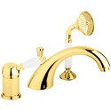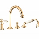 Назначение: ванна+душ • Конструкция: однорычажный • Монтаж: горизонтальный • Материал: покрытие - золото • Монтажные отверстия: 4 отверстия • Форма излива: традиционная • Душевая лейка в комплекте: есть