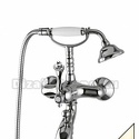 Назначение: ванна+душ • Конструкция: однорычажный • Монтаж: вертикальный • Материал: покрытие - золото • Подводка: жесткая • Монтажные отверстия: 2 отверстия • Форма излива: традиционная • Душевая лейка в комплекте: есть • Держатель для душевой лейки: на смесителе • Донный клапан в комплекте: есть