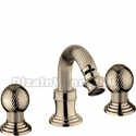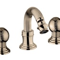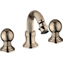 Назначение: для биде • Конструкция: двухрычажный • Монтаж: горизонтальный • Клапан: керамический • Материал: латунь, покрытие - бронза • Подводка: гибкая • Монтажные отверстия: 3 отверстия • Форма излива: традиционная • Душевая лейка в комплекте: нет • Аэратор: есть • Донный клапан в комплекте: есть