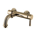 Назначение: ванна+душ • Конструкция: однорычажный • Монтаж: вертикальный • Клапан: керамический • Материал: латунь, покрытие - бронза • Подводка: жесткая • Монтажные отверстия: 2 отверстия • Форма излива: традиционная • Душевая лейка в комплекте: нет • Аэратор: есть • Эксцентрики в комплекте: есть