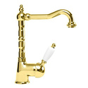 Назначение: для умывальника • Конструкция: однорычажный • Монтаж: горизонтальный • Материал: покрытие - золото • Монтажные отверстия: 1 отверстие • Форма излива: традиционная • Душевая лейка в комплекте: нет • Донный клапан в комплекте: есть