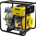 для грязной воды • дизельный двигатель • мощность 4 кВт • производительность 1000 л/мин • высота подъема 26 м • бак 3.3 л • патрубки 80/80 мм