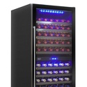 Тип: двухкамерный винный шкаф • Расположение: отдельностоящий • Цвет: чёрный • Размеры (ШxВxГ): 595x1390x677 мм • Количество дверей: однодверный • Общий объем: 313 л • Объем холодильной камеры: 313 л • Винный шкаф: 110 бут. • Разморозка: автоматическая • Управление: цифровой дисплей, электронное • Освещение в холодильной камере: есть • Перевешиваемые двери: есть