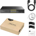 управляемый 2-го уровня • настольный/стоечный • матрица 20 Гбит/с • 14.88 Mpps • 8xGbit • 1xSFP • PoE • бюджет 118 Вт