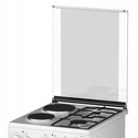 Тип конфорок: комбинированные • Рабочая поверхность: нерж. сталь, эмаль • Тип духовки: электрическая • Размеры (ШxВxГ): 500x850x600 мм • Цвет: белый • Конфигурация электрических конфорок: 1 x 1500 g 1 x 1000 g • Электрические конфорки: всего - 2 • Газовые конфорки: всего - 2 • Объем духовки: 50 л • Очистка духовки: традиционная • Подсветка: есть • Количество стекол дверцы духовки: 2