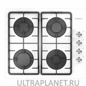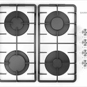 Поверхность: варочная панель • Тип поверхности: газовая • Рабочая поверхность: закаленное стекло • Число конфорок: 4 • Установка: независимая • Газовые конфорки: всего - 4 • Газ-контроль конфорок: есть • Тип управления: механическое • Переключатели: поворотные • Электроподжиг: есть, автоматический • Размеры: 590x510x80 мм • Размер ниши для встраивания: 555x475 мм • Цвет: панель - белый