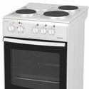 Тип конфорок: электрические • Рабочая поверхность: эмаль • Тип духовки: электрическая • Размеры (ШxВxГ): 500x850x560 мм • Цвет: белый • Конфигурация электрических конфорок: 1 x 1500 g 2 x 1000 g • Электрические конфорки: всего - 4 • Объем духовки: 50 л • Количество режимов работы духовки: 5 • Тип управления: механическое • Переключатели: поворотные • Ящик для посуды: есть • Комплектация: решетка