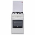 газовая панель + газовый духовой шкаф • газ-контроль конфорок • поверхность: эмалированная сталь • крышка из закалённого стекла • управление механическое • таймер механический • размеры (ШхГхВ): 50x60x85 см • цвет белый