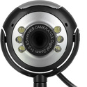 Ну блин - цена! 179he, это вам не тут. Все ниже исходя из такой цены. Есть встроенный микрофон и слышно хорошо 0,3 мегапикселя 640x480 кабель 1.4 метра и довольно толстеньий Регулируется угол вертикального поворота на ~170градусов, т.е. вверх смотрит почти на потолок, а вниз на собственную подставку. Регулируется горизонтально на 360 град - тупо крутится на ноге. Может ставиться как на стол, так и на монитор - подставка раскладывается. Если на стол, то есть типа мягкий пластик подставки, а когда раскладываешь на монитор то еще мягче типа софттач По бокам 6 светодиодов - включаются тумблером сзади. 2 положения вкл и ярче. Светят просто пипец - ослепнуть можно легко, зато ночью лампу не надо. Гарантия 6мес Работает без драйверов XP и 7 64bit Сверху есть кнопка фотосъемки На дне есть железное гнездо для штатива (сам в шоке)
