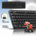 Состав: клавиатура • Назначение: настольный компьютер • Подключение: проводное (USB) • Конструкция: стандартная • Цвет: черный • Количество клавиш: 107 • Дополнительные клавиши: 3 (спящий режим, пробуждение, включение/выключение) • Регулировка наклона: есть • Кабели: клавиатура - • Размеры клавиатуры: 442x142x11 мм