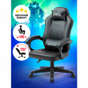 Тип: геймерское • Сиденье: 49x47 см, кожзам • Спинка: 68 см, кожзам • Механизм: качание • Регулировка: наклона, высоты, жесткости