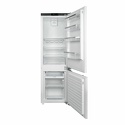 встраиваемый • No Frost (морозильная камера) • электронное управление • класс A+ • полезный объём: 243 л (180 + 63 л) • перенавешиваемые двери • полка для вина • лоток для яиц • 54x54.5x177 см • белый